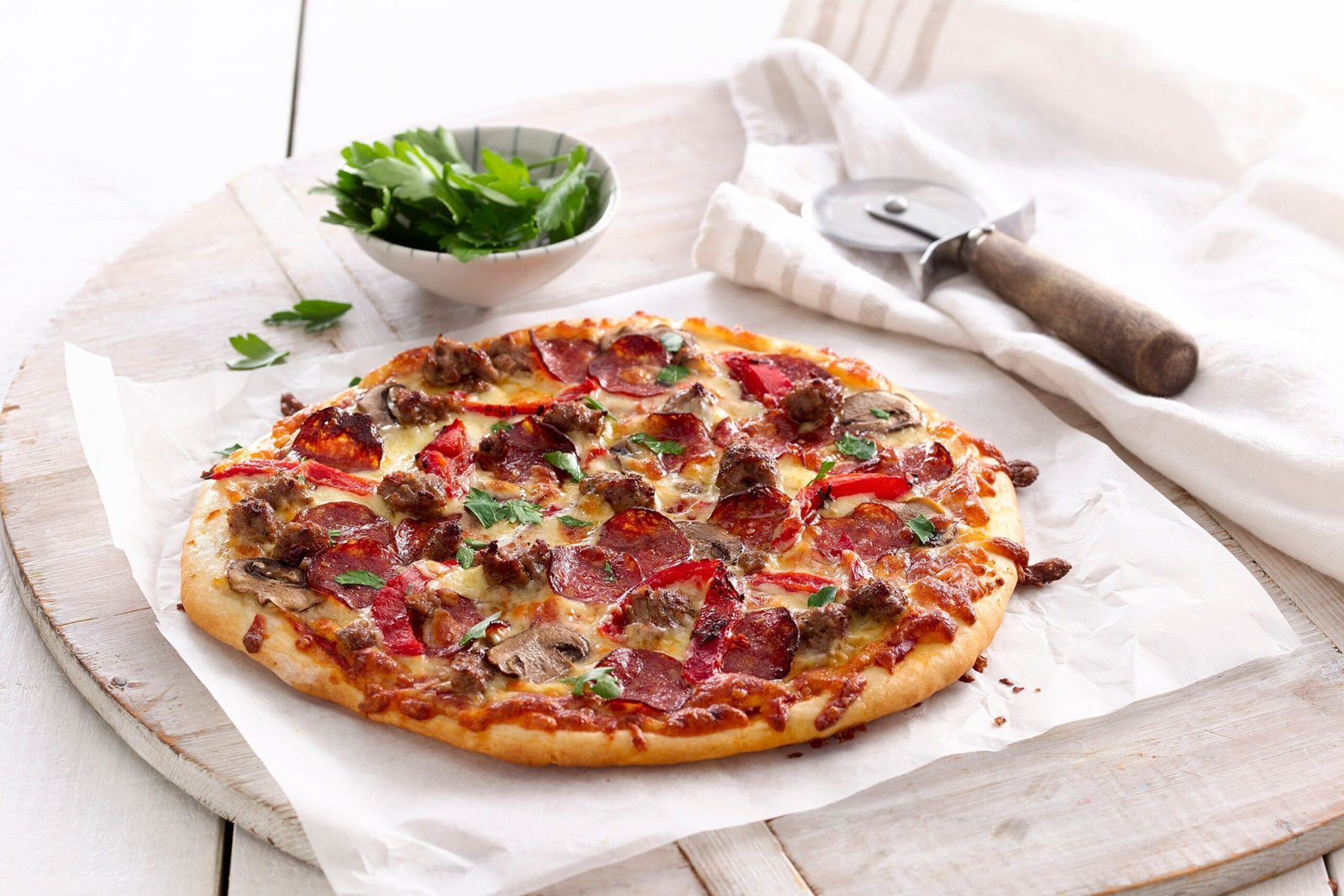 The Pepperoni Pizza is a true classic, loved for its bold and irresistible flavors. A rich tomato sauce base is layered with creamy, melted mozzarella cheese, creating the perfect foundation for the star ingredientβspicy, crispy pepperoni slices. As it bakes, the pepperoni releases its flavorful oils, infusing the pizza with a smoky, slightly spicy kick. A go-to favorite for pizza lovers everywhere!